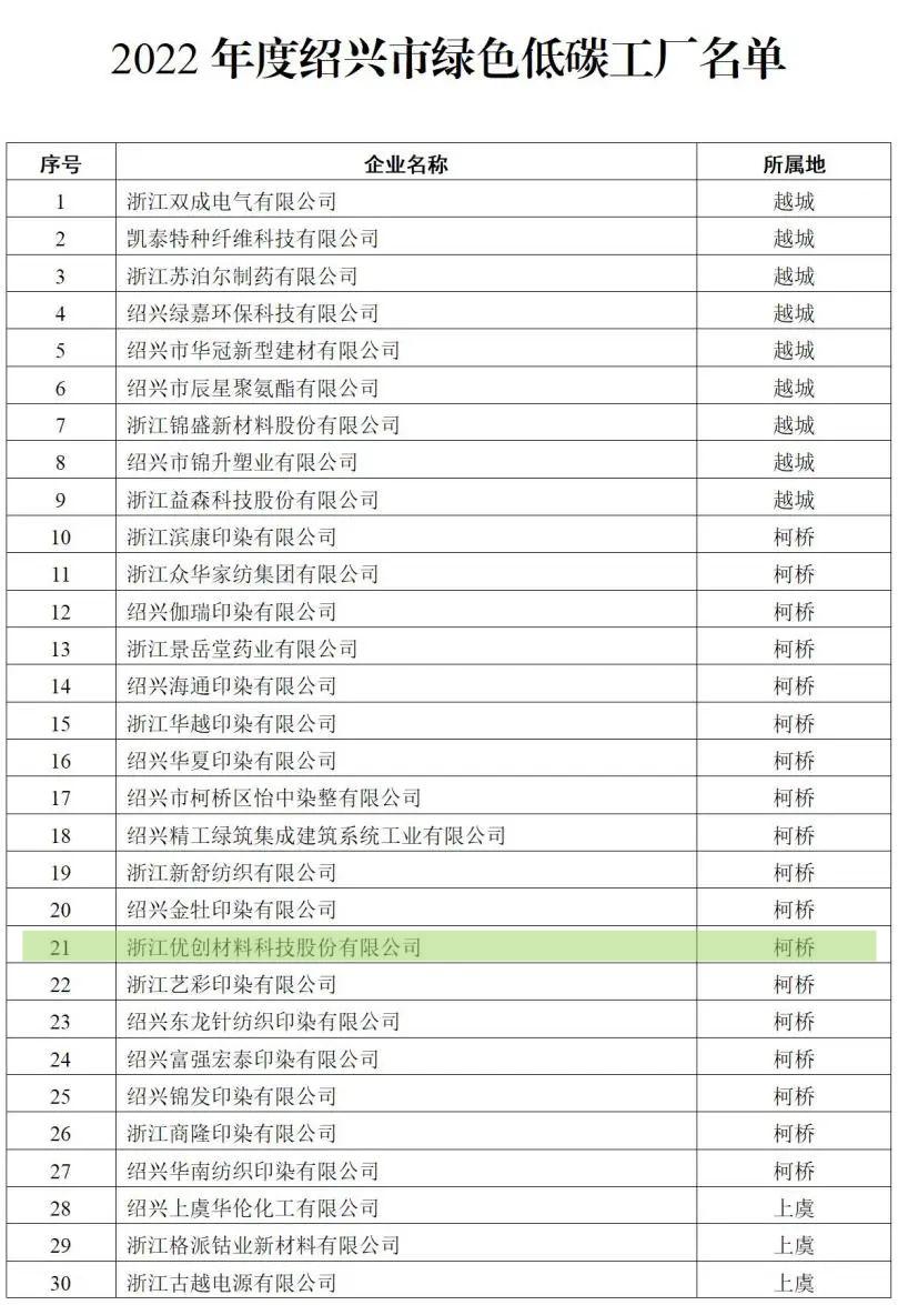 我司積極響應(yīng)上級(jí)為推動(dòng)產(chǎn)業(yè)結(jié)構(gòu)優(yōu)化升級(jí),提高制造業(yè)綠色低碳發(fā)展水平,打造綠色制造典型,強(qiáng)化綠色制造示范引領(lǐng),按照《紹興市綠色低碳工廠(園區(qū))評(píng)價(jià)辦法》(紹市經(jīng)信〔2022〕36號(hào)),在各地經(jīng)信部門初審?fù)扑]的基礎(chǔ)上,經(jīng)專家評(píng)審,認(rèn)定我司為2022年度紹興市綠色低碳工廠。